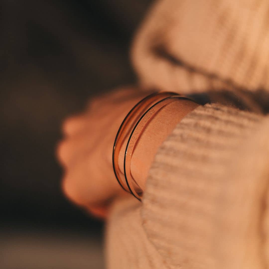 - L’AVENTURIÈRE” rigid, adjustable bracelet.