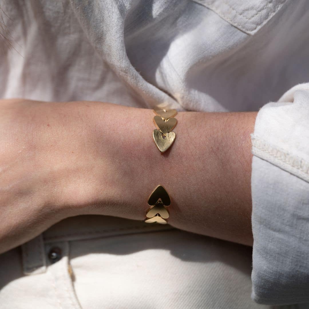 - Détails : Finition polie avec sur chaque extrémité, trois coeurs satinés.