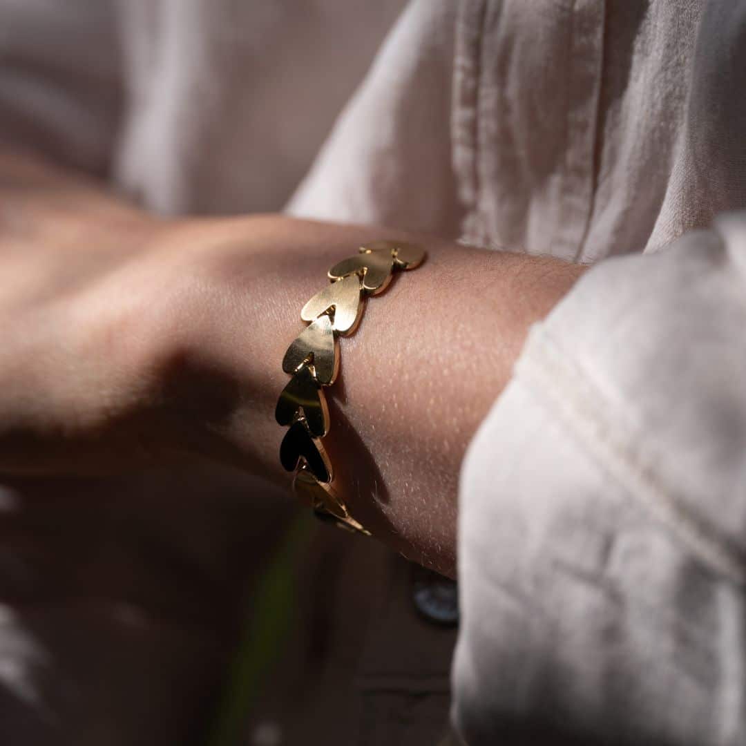 Bijoux dorés : Nous déconseillons de porter des bijoux lorsque vous dormez, vous baignez ou faites du sport. Évitez également tout contact avec les parfums et les produits cosmétiques. La patine dorée a tendance à s’estomper avec le temps. Il s’agit d’une usure naturelle parfaitement normale. La rapidité avec laquelle celle-ci disparaît dépend de l’entretien du bijou. Un nettoyage occasionnel avec un chiffon adapté permet d’enlever la plupart des impuretés.