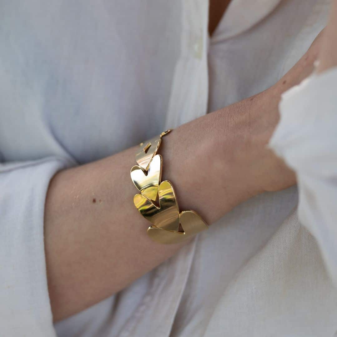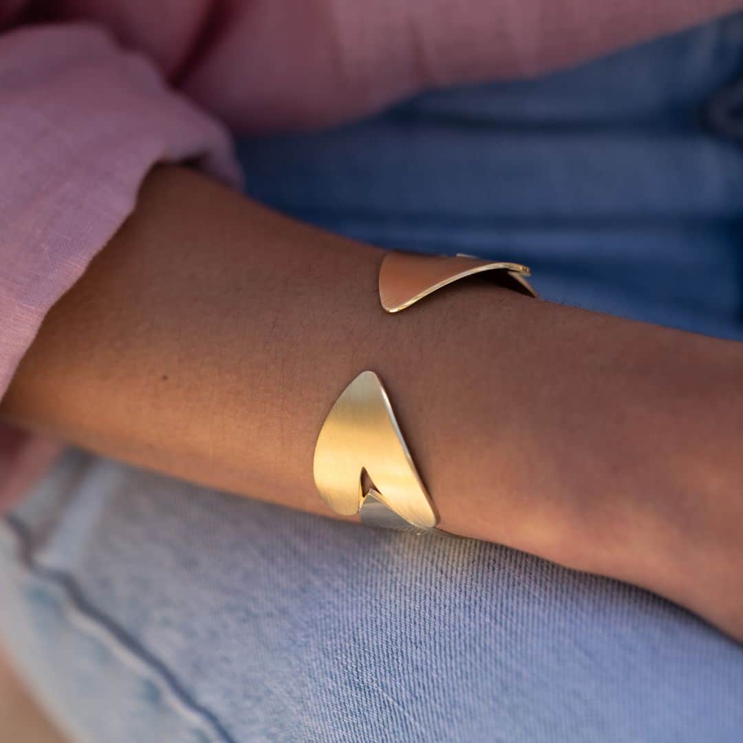 - Bracelet-manchette ouvert, rigide et ajustable.