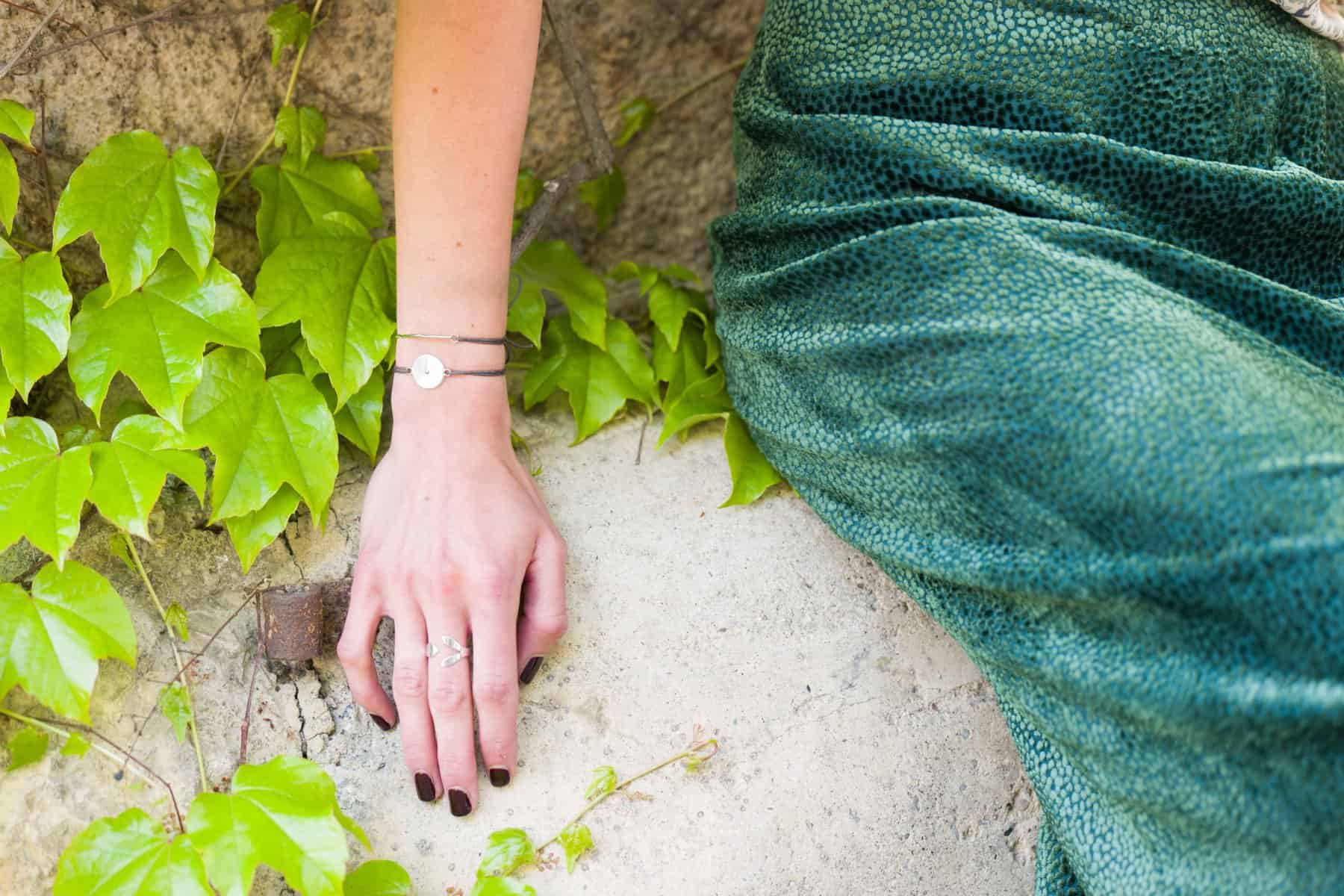 Solid silver bracelet – adjustable to the wrist with its 100% suede cord.