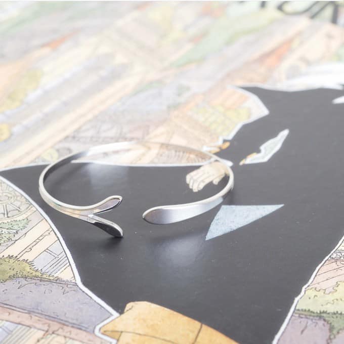 - Bracelet ouvert, rigide et ajustable.
