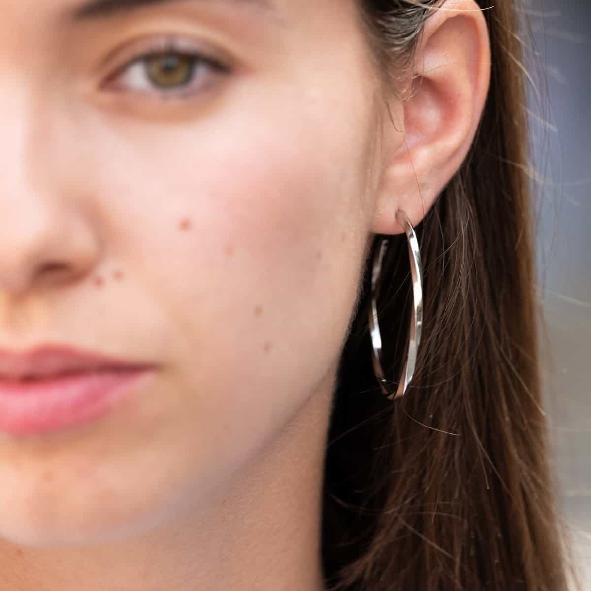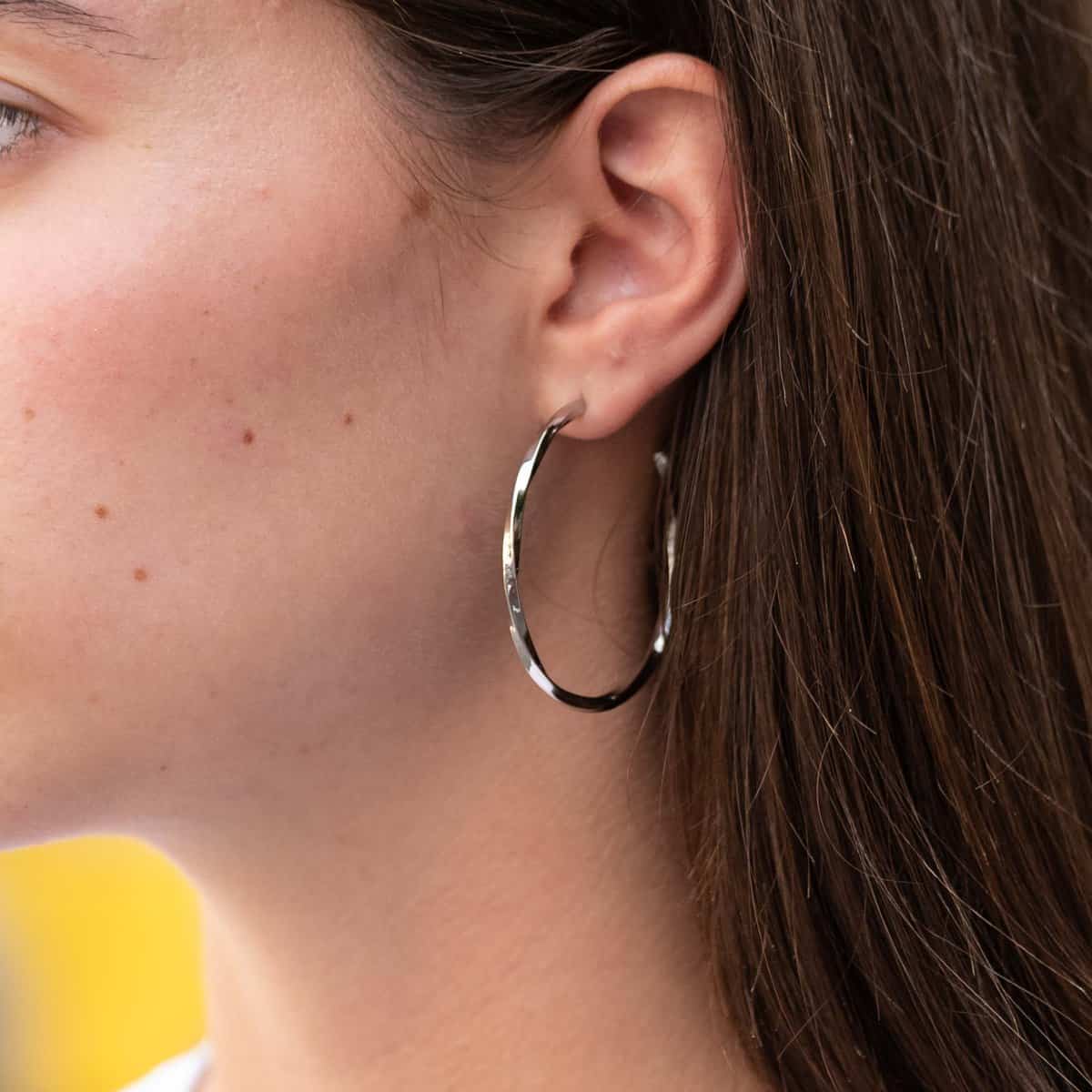 Boucle en argent massif, vendue à l’unité. Une créole large à la finition à la main unique.