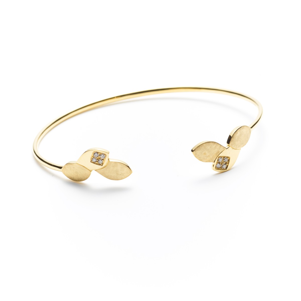 Bracelet jonc ouvert en or 750. 22 diamants blancs sertis à la main sur les délicats pétales de tournesol emblématiques de la marque.
