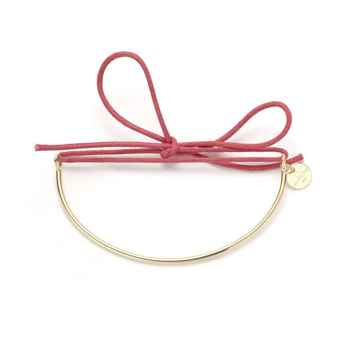 Doré à l’or 18 carats, lisse, il se porte sur le dessus ou le côté. Il se personnalise à volonté grâce aux 46 couleurs de cordons disponibles .