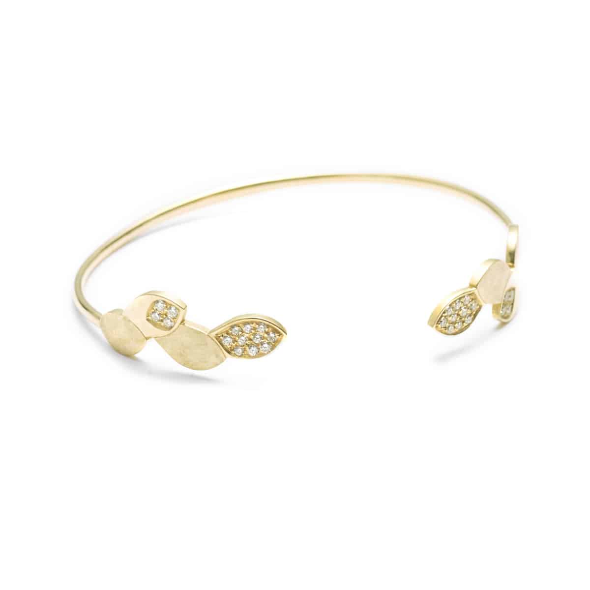 Bracelet jonc ouvert en or 750. 22 diamants blancs sertis à la main sur les délicats pétales de tournesol emblématiques de la marque.