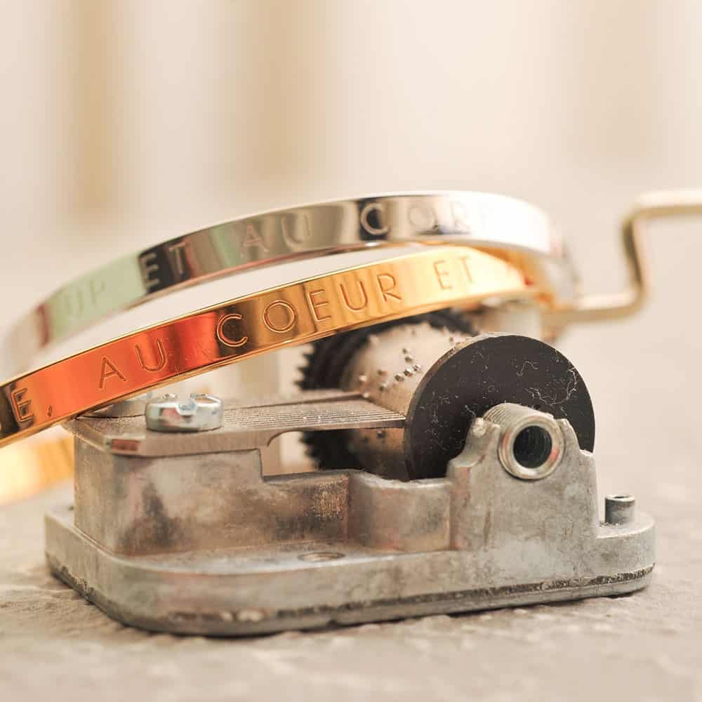 - Matériaux : laiton doré à l’or fin 18 carats à 5 microns.