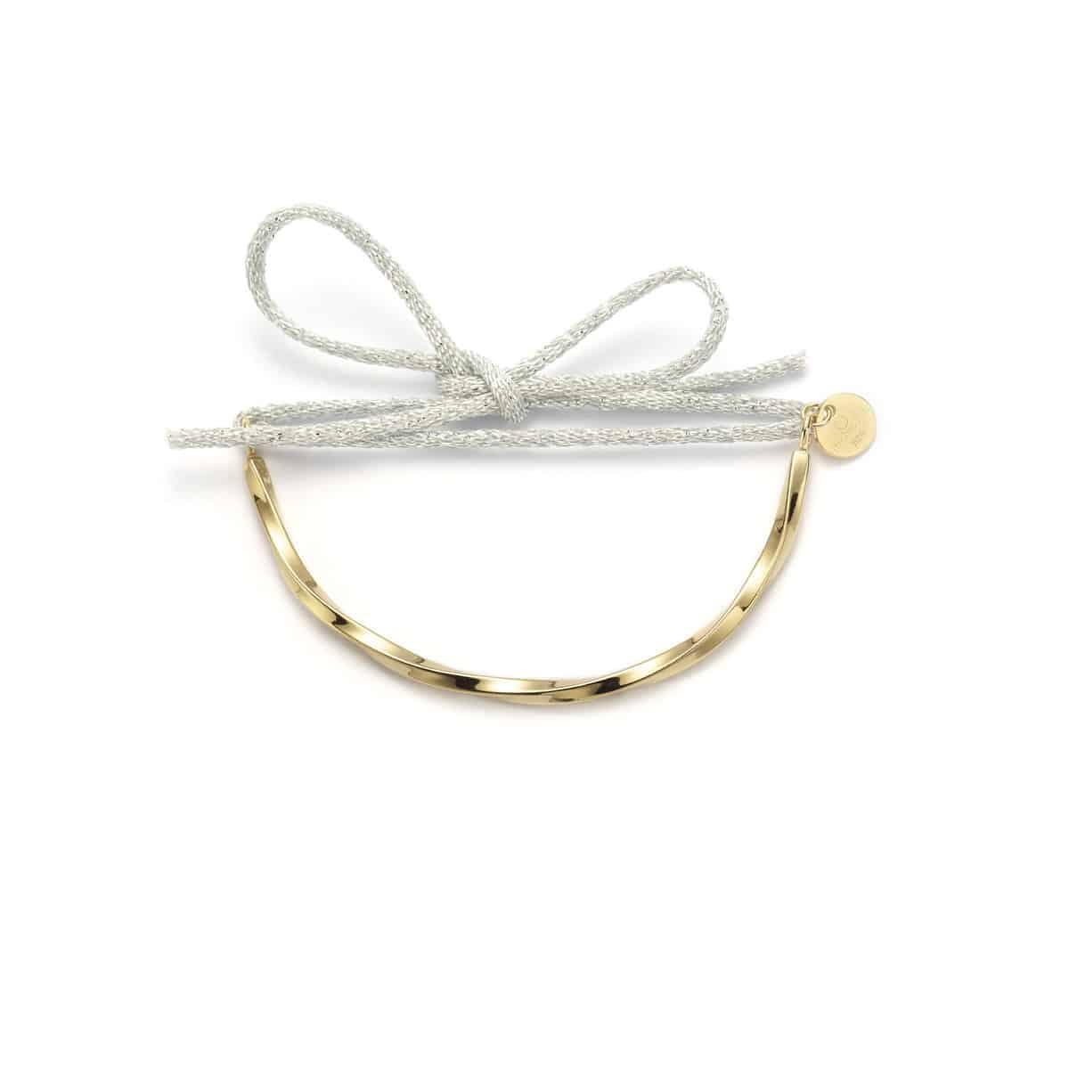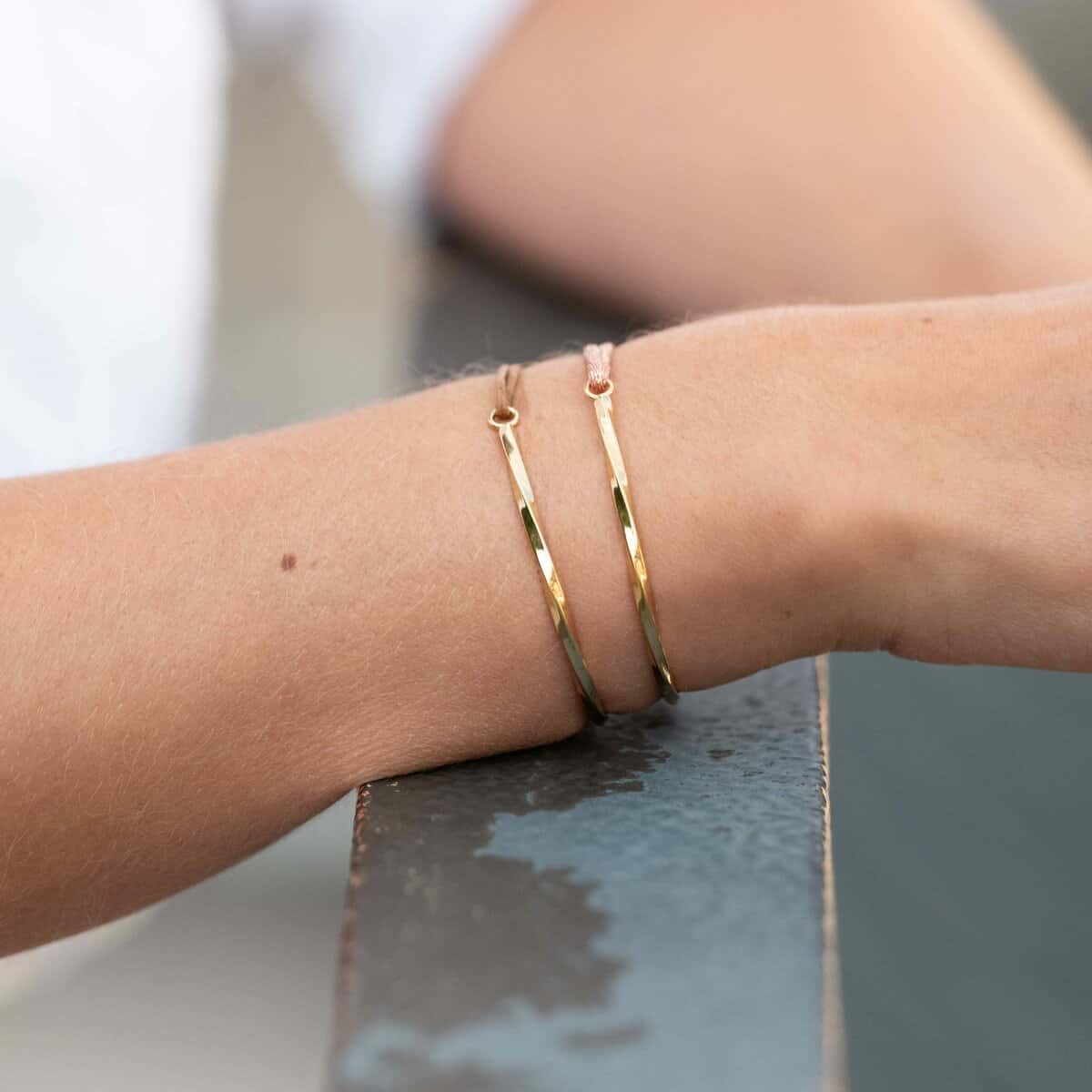 Bracelet doré à l’or fin 18 carats, mi-rigide, mi-cordon. 46 couleurs disponibles pour l’adapter à chaque envie, saison ou émotion.