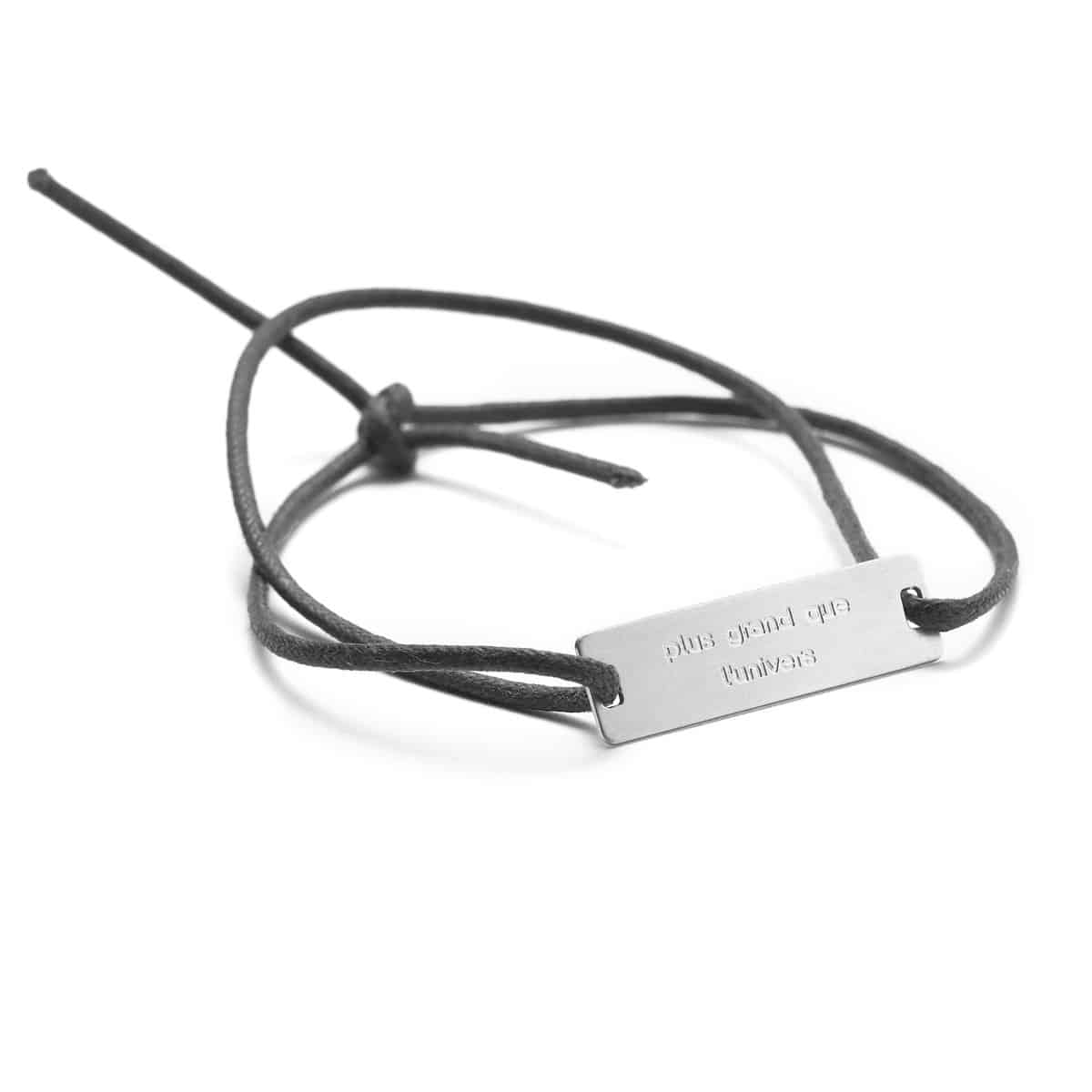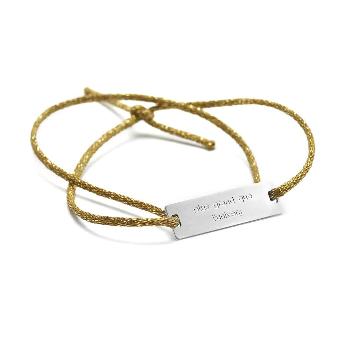 - Bracelet à texte et son cordon 100% coton ou paillettes.