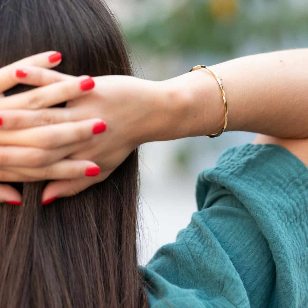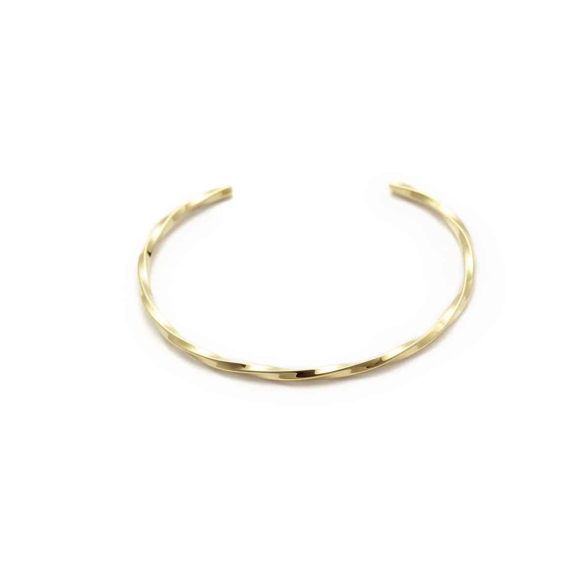 Bracelet doré, rigide, ouvert et ajustable. Twist fait à la main par nos artisans.
