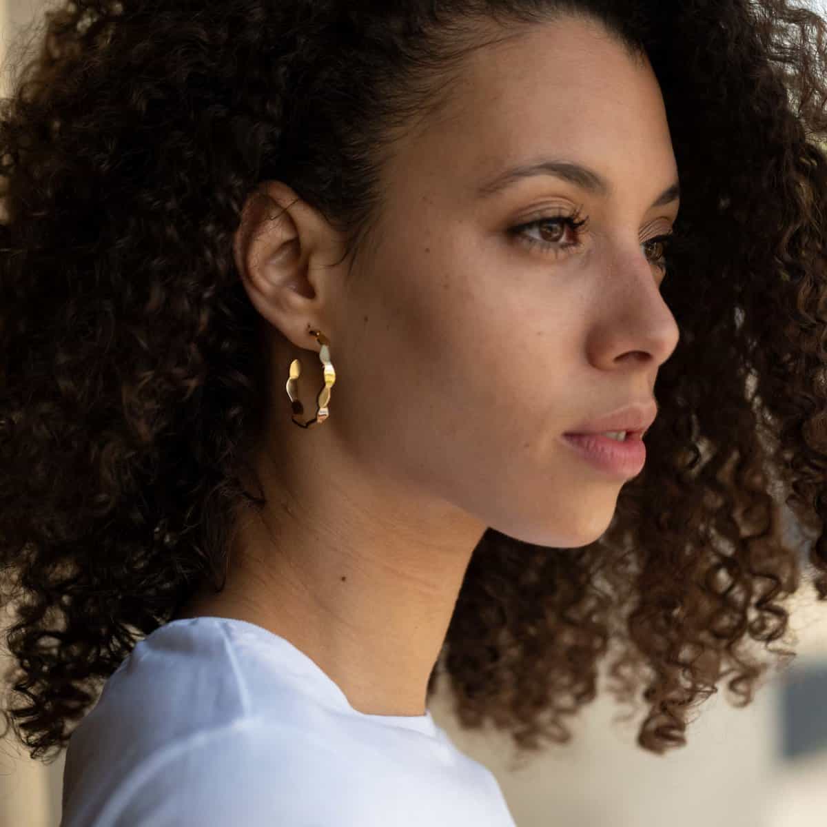 Bijoux dorés : Nous déconseillons de porter des bijoux lorsque vous dormez, vous baignez ou faites du sport. Évitez également tout contact avec les parfums et les produits cosmétiques. La patine dorée a tendance à s’estomper avec le temps. Il s’agit d’une usure naturelle parfaitement normale. La rapidité avec laquelle celle-ci disparaît dépend de l’entretien du bijou. Un nettoyage occasionnel avec un chiffon adapté permet d’enlever la plupart des impuretés.