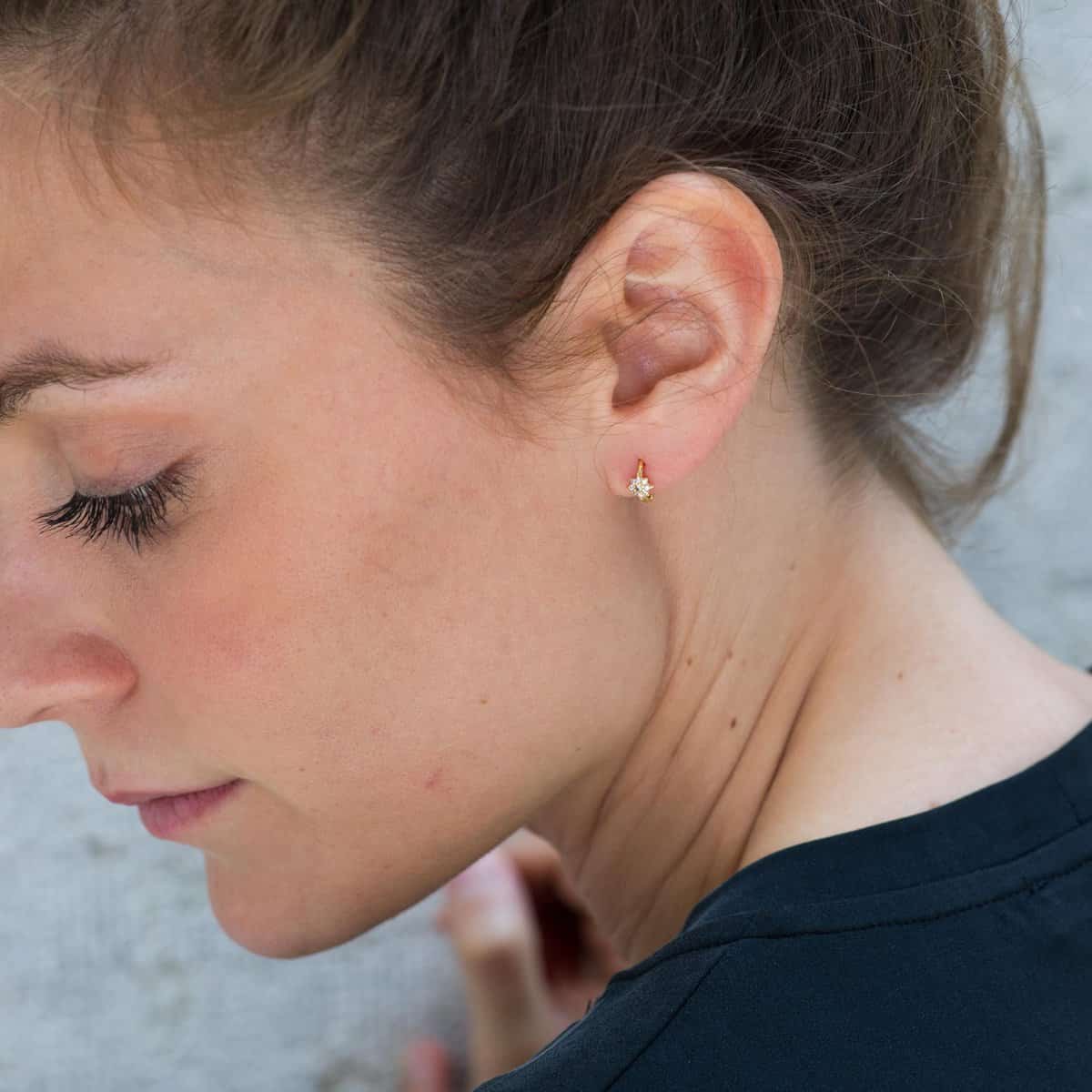 - Matériaux : laiton doré l’or fin 18 carats à 5 microns. Zircons blancs sertis à la main.