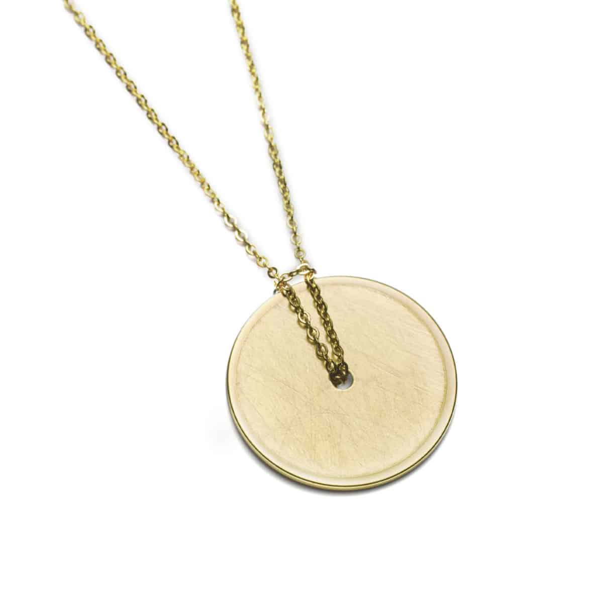 Collier large doré à l’or fin. Un cercle de lumière satiné à la main, poli en bordure et en son centre.