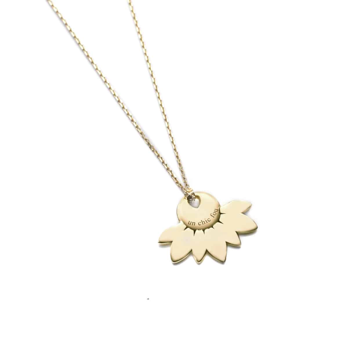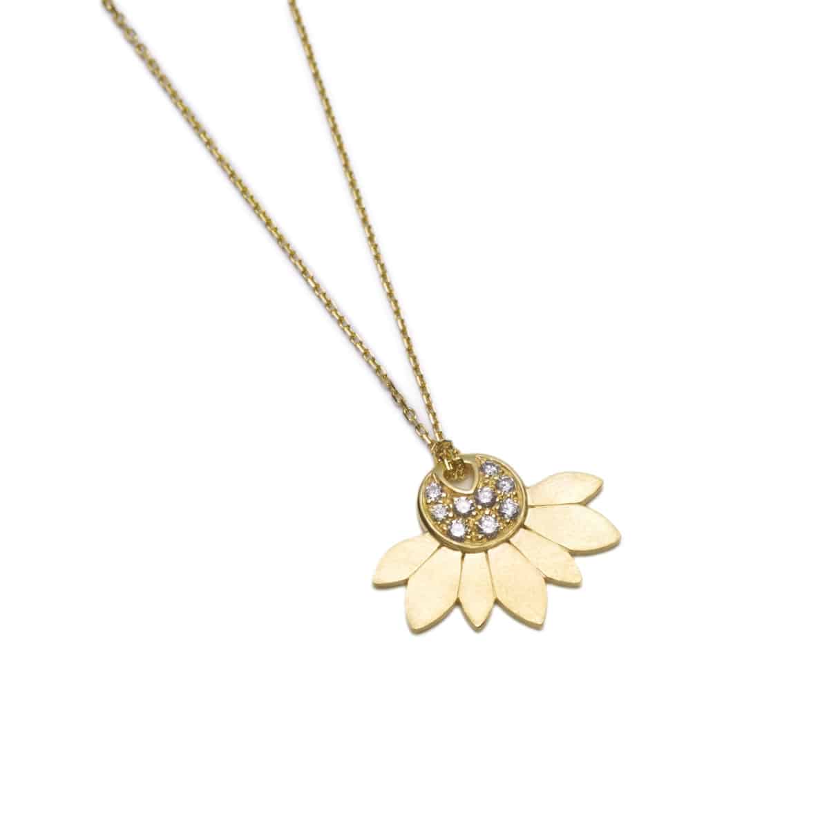- Collier en or 750, pendentif fleur de tournesol serti à la main. Réalisé sur commande uniquement !