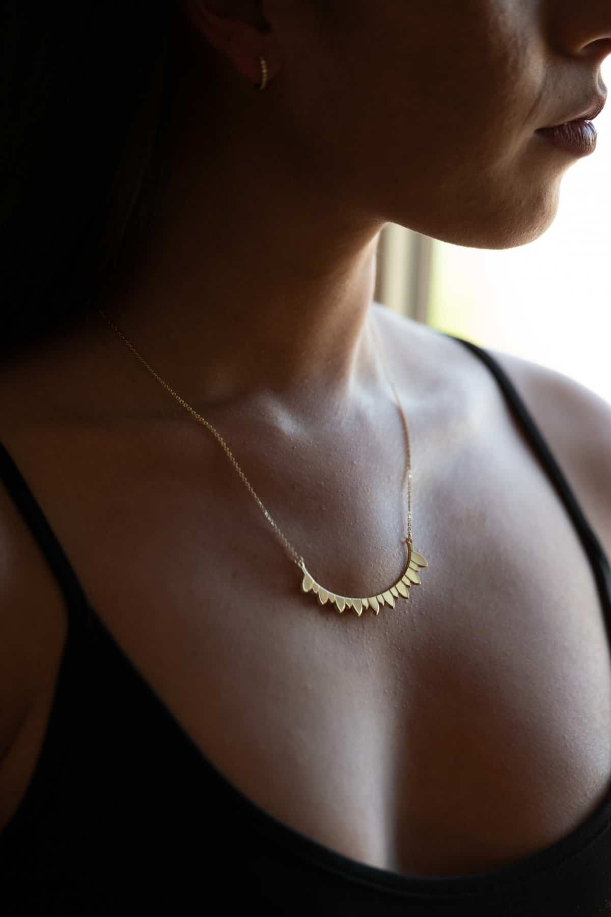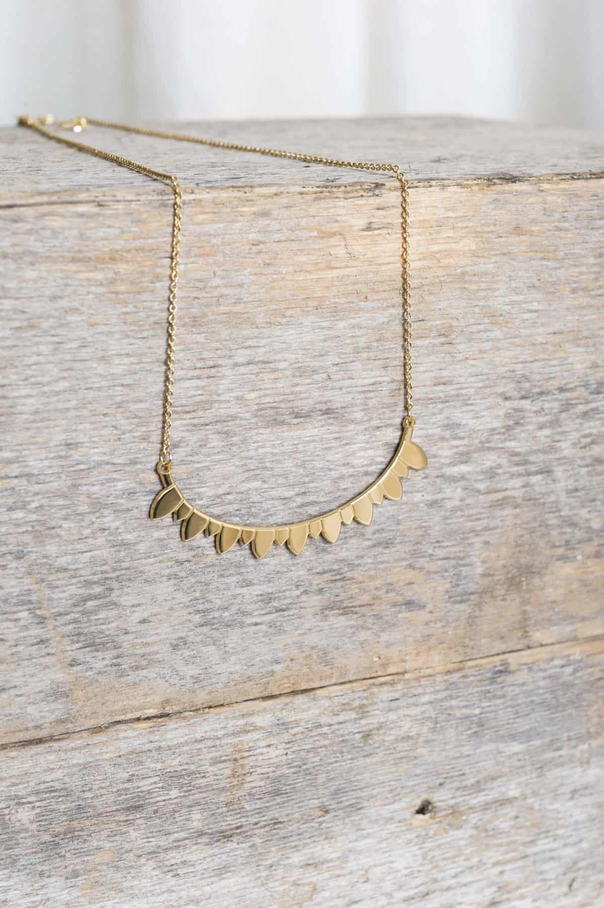 - Collier doré en arc.
