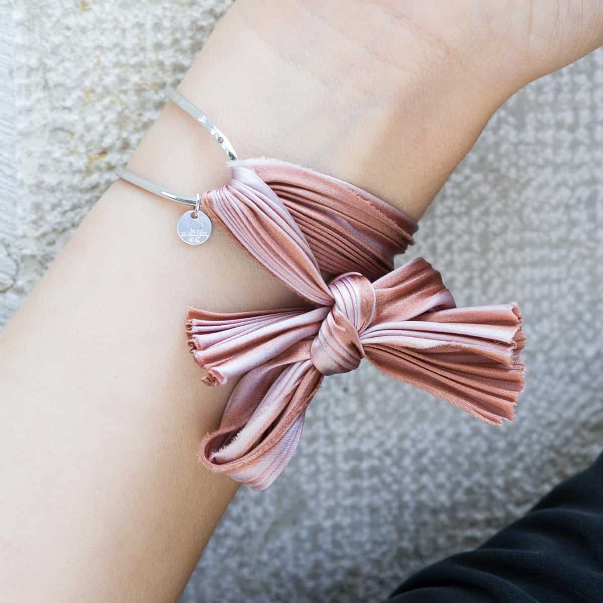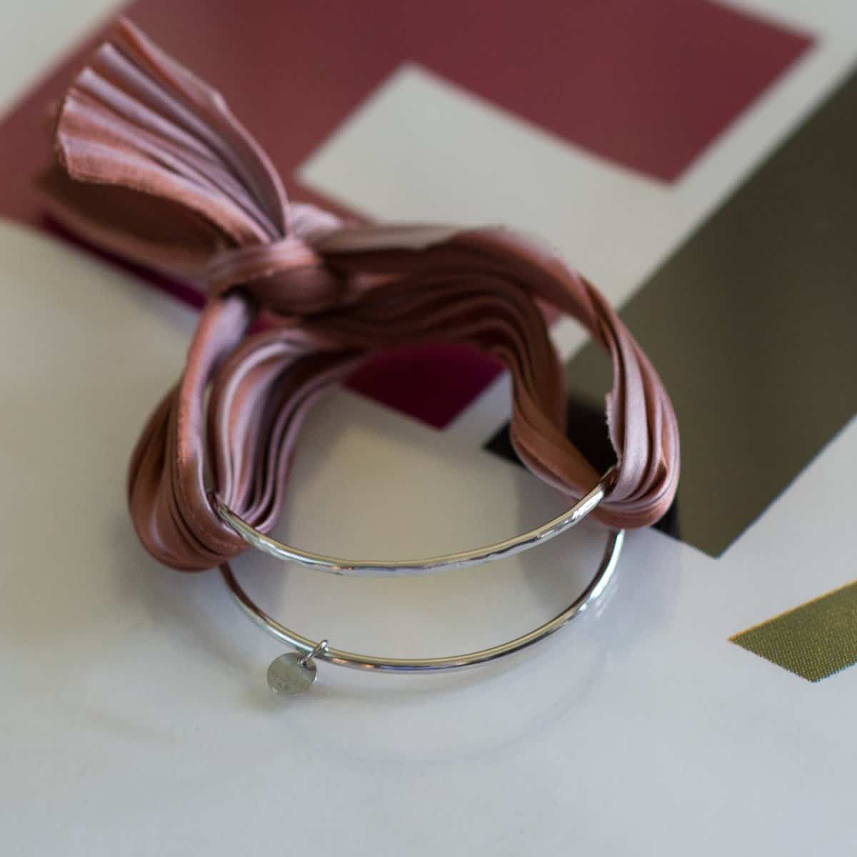 - Bracelet double jonc XL ouvert et son ruban 100% soie.