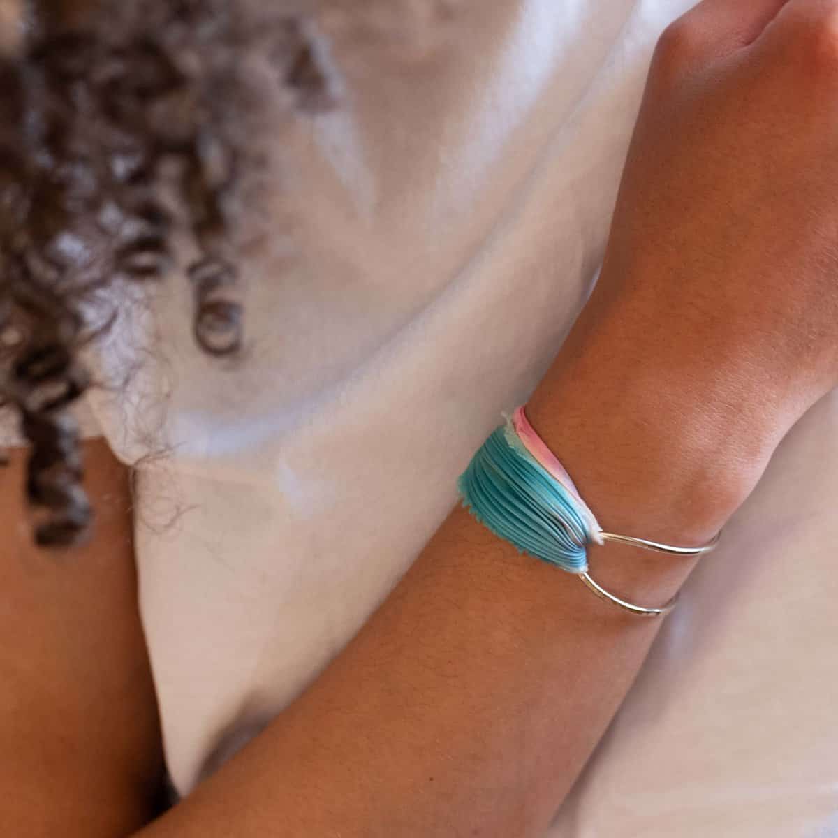 Un bracelet unique, joyeux et exubérant, en argent massif rhodié.