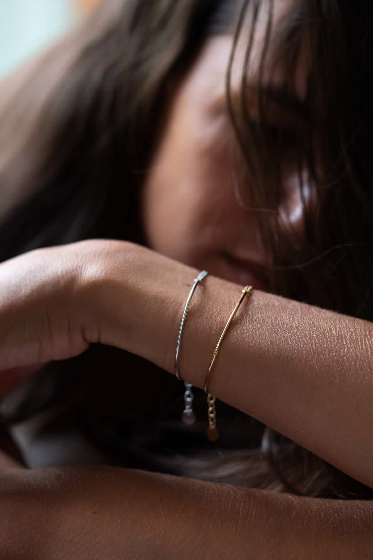Pensé par la créatrice comme une petite parenthèse de la vie, un moment où l’on s’arrête pour saisir l’instant présent, le bracelet DEMIE est un des best-sellers de la marque depuis sa création en 2011. Il se décline ici avec sa chaîne pour pouvoir s’enlever facilement, disparaître et revenir comme une ECLIPSE