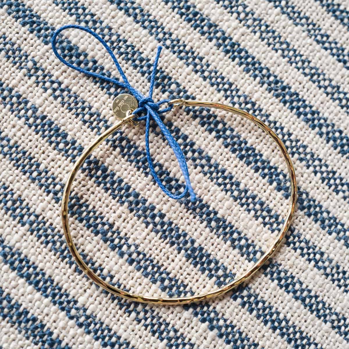 - Détails : Finition martelée. Ajustable au poignet. 10 couleurs de cordons au choix.
