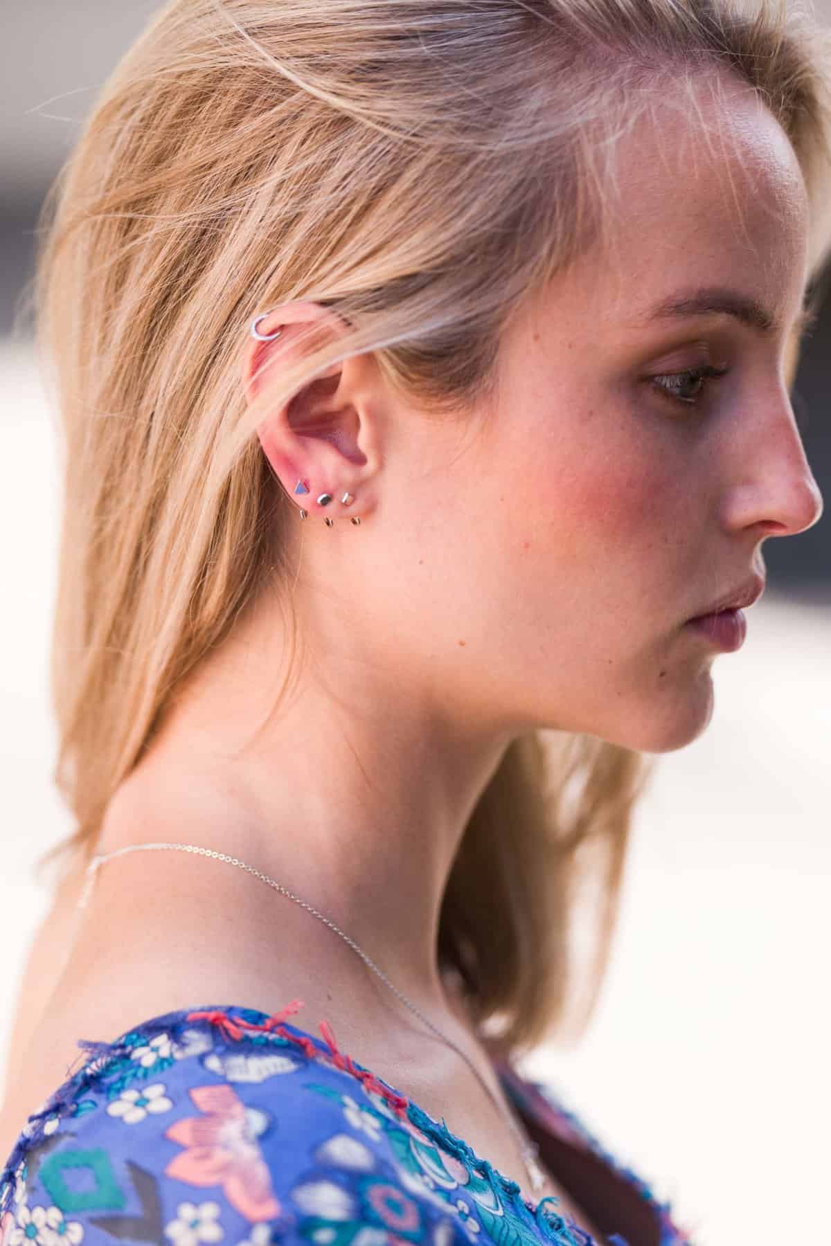 - Détails : diamètre 10mm, motif écaille 3mm. Boucle ouverte. Finition polie.