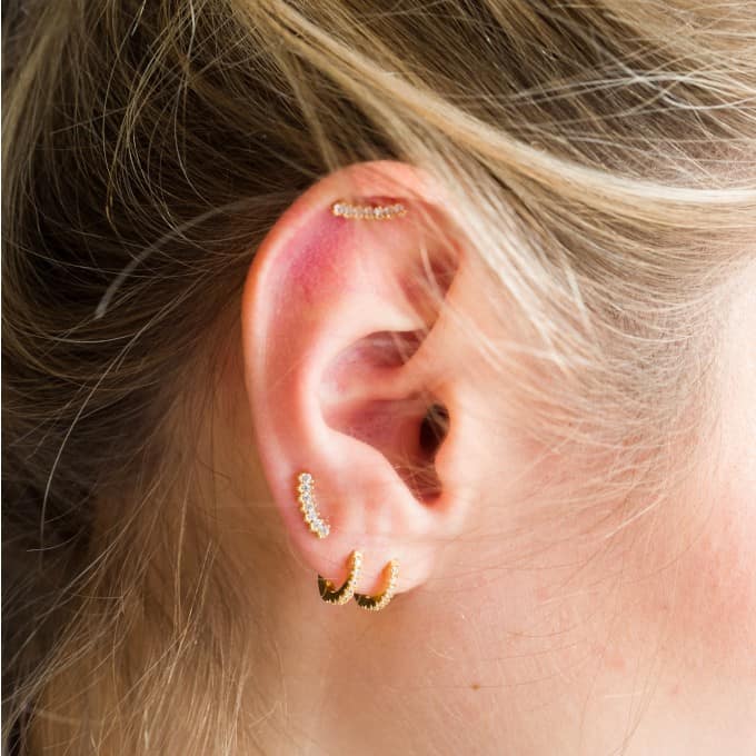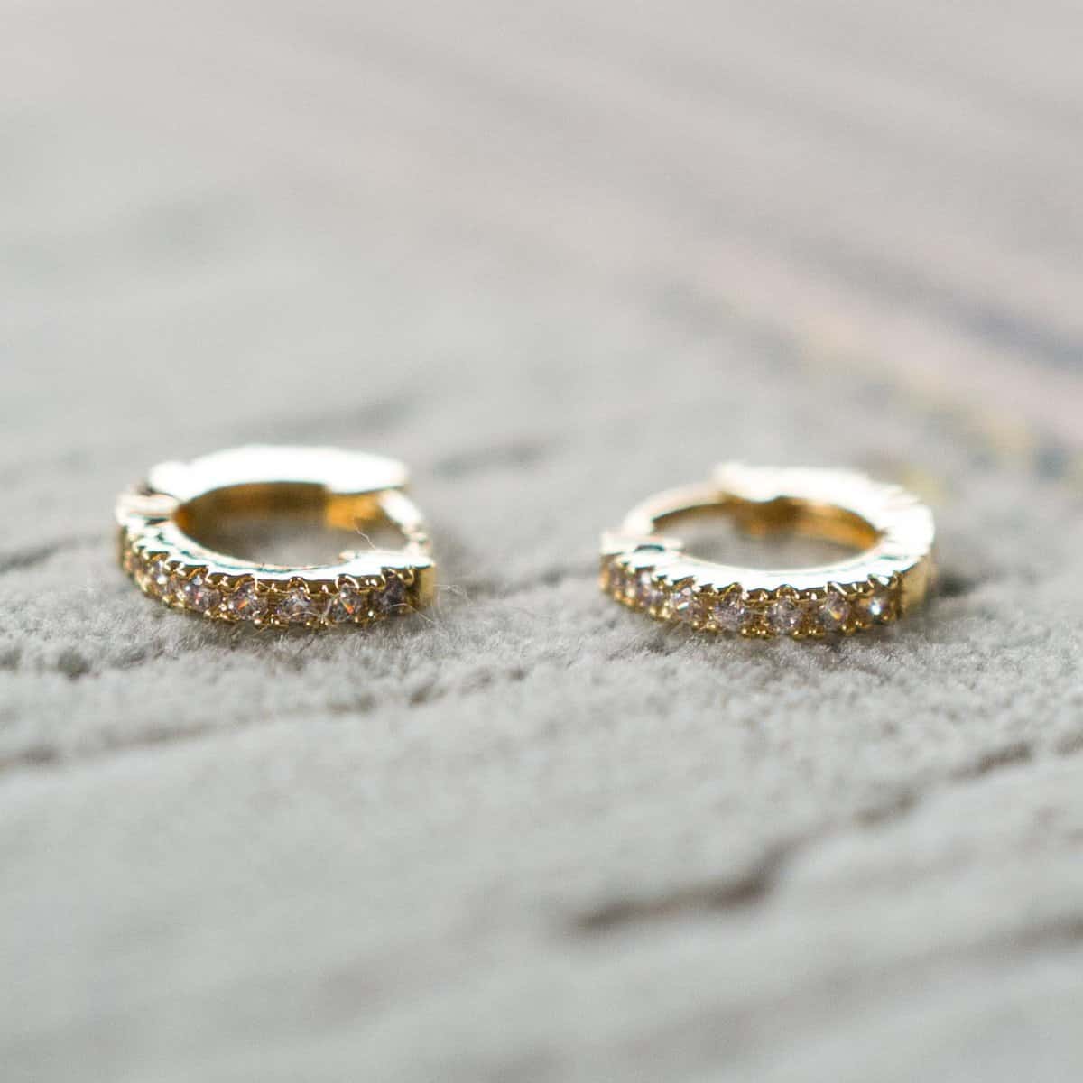 - Matériaux : laiton doré à l’or fin 18 carats à 5 microns. Zircons blanc sertis à la main.