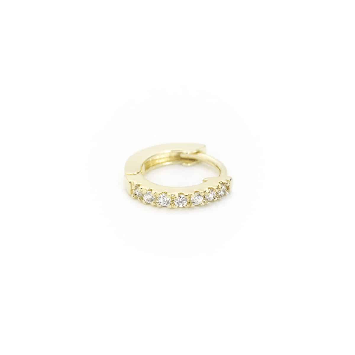 - Détails : diamètre extérieur 9mm, fermeture à encoche. Zircons blancs taille diamant.