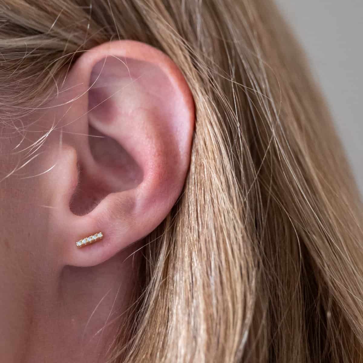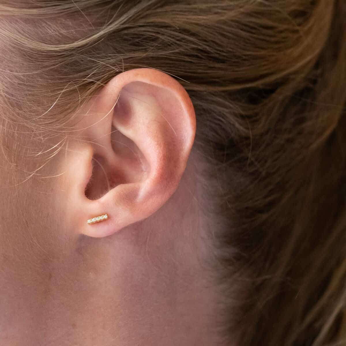 - Détails : longueur 7mm, fermeture poussoir. Zircons blancs taille diamant.