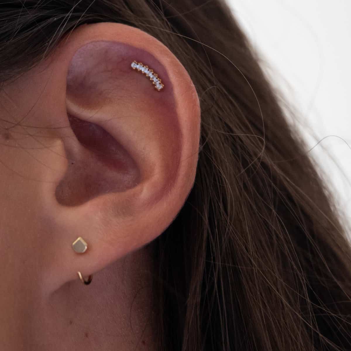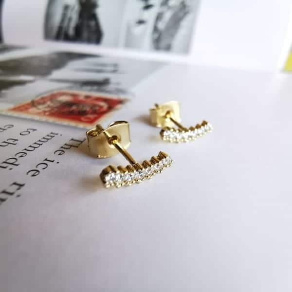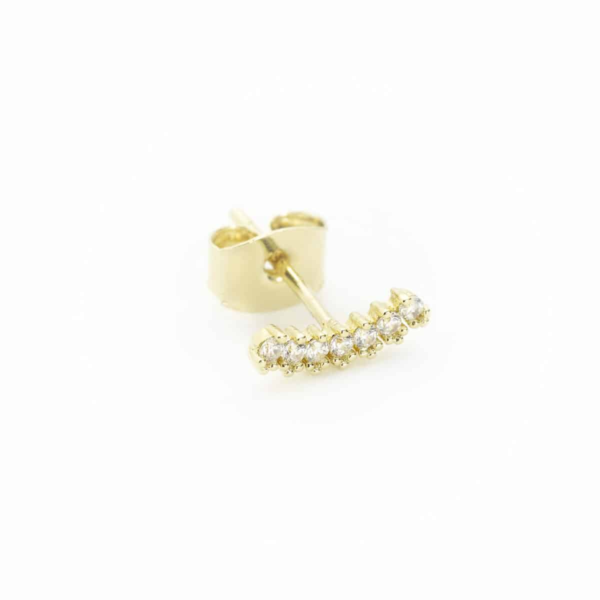 - Matériaux : laiton doré à l’or fin 18 carats à 5 microns. Zircons blanc sertis à la main.