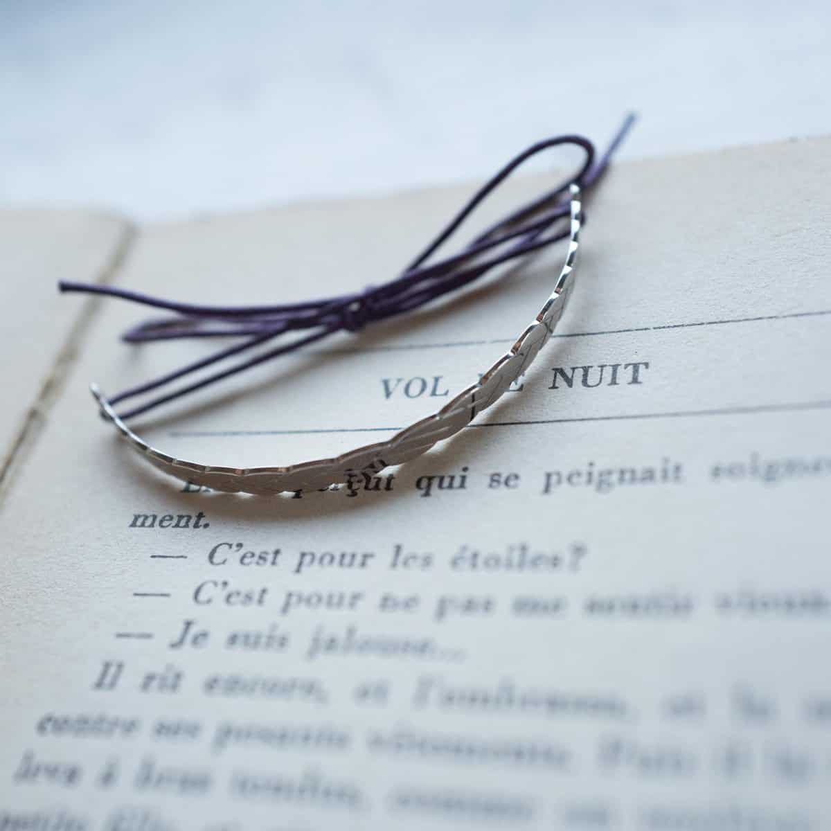 - Bracelet demi lune ouvert et son cordon 100% coton ou paillettes.