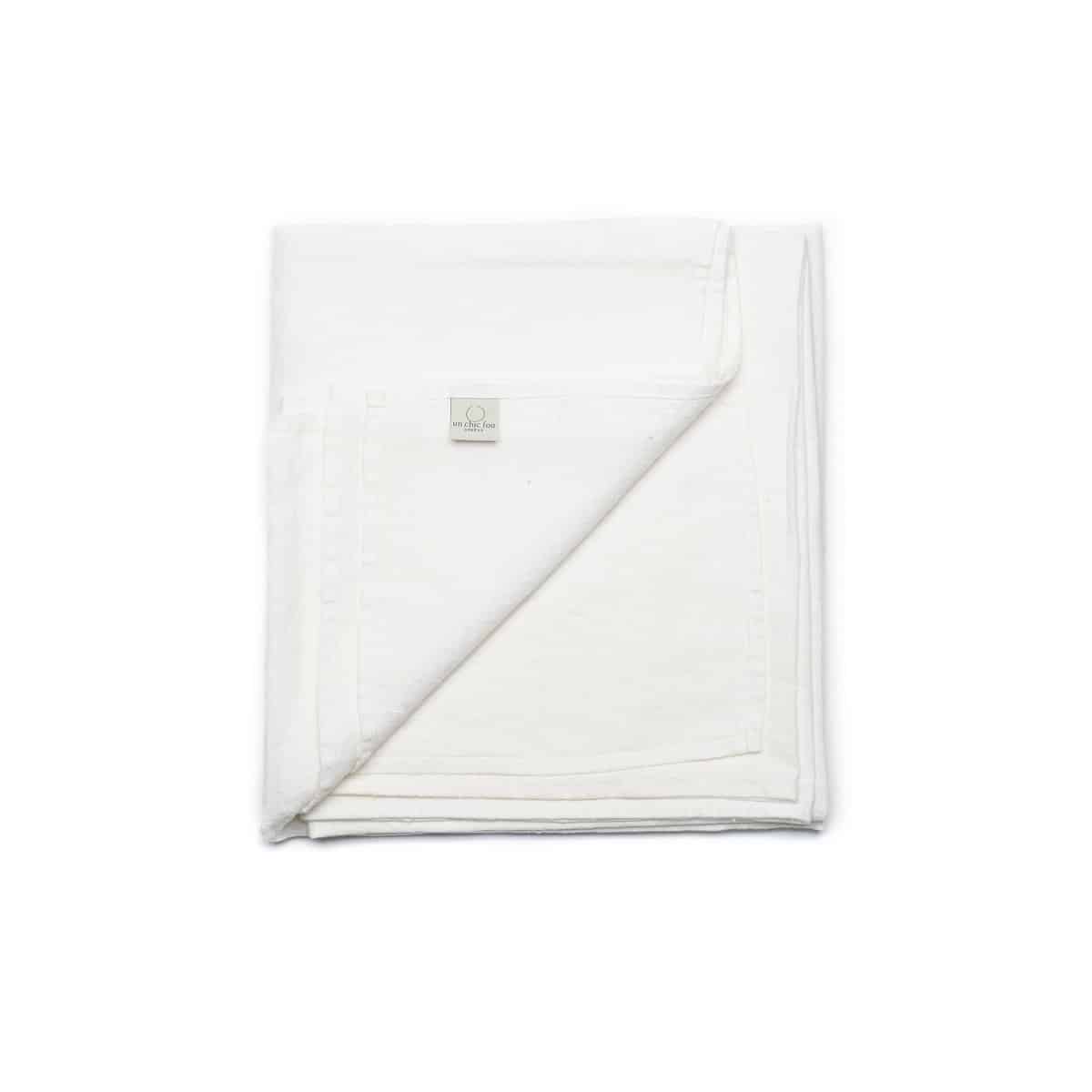 Une nappe 100% lin, élégante et douce, en lin lourd, cousue à la main. Une couleur Neige, blanc immaculé, doux et élégant pour habiller votre table d’un chic fou.