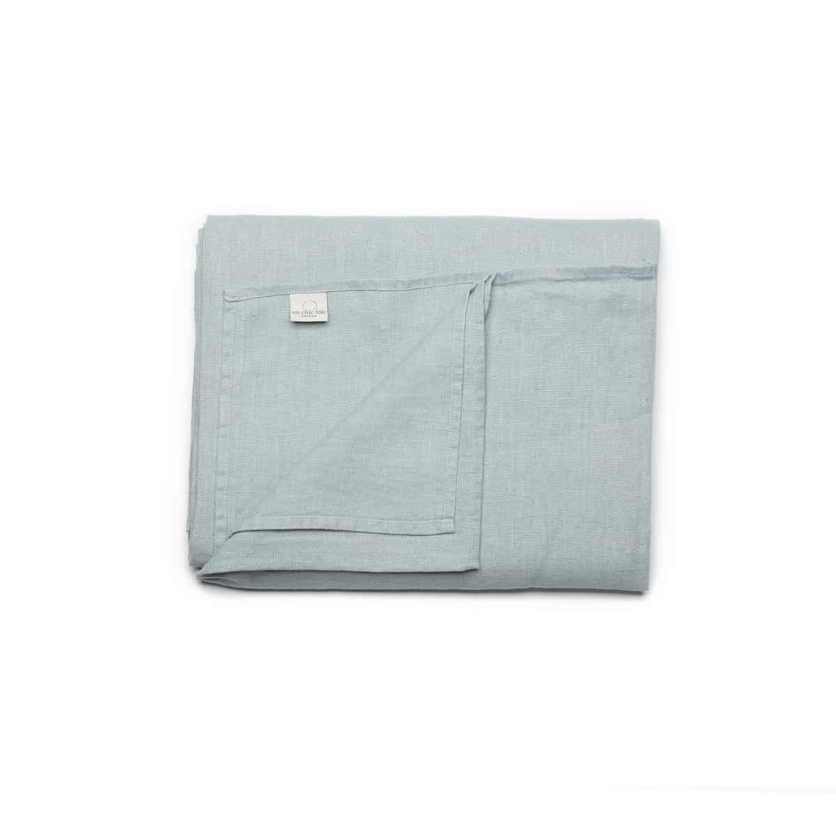 Une nappe 100% lin, élégante et douce, en lin lourd, cousue à la main. Une couleur Glacier, bleu clair, élégant et chaleureux, pour illuminer votre table d’un chic fou.