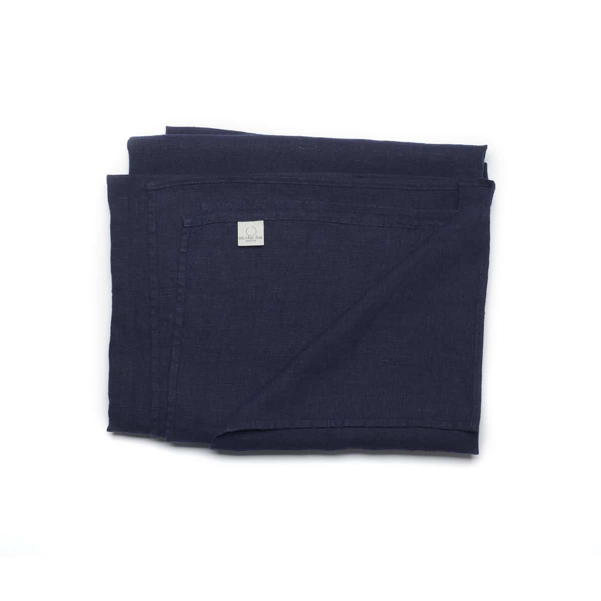 Une nappe 100% lin, élégante et douce, en lin lourd, cousue à la main. Une couleur Indigo, bleu profond d’une rare élégance pour habiller votre table d’un chic fou.