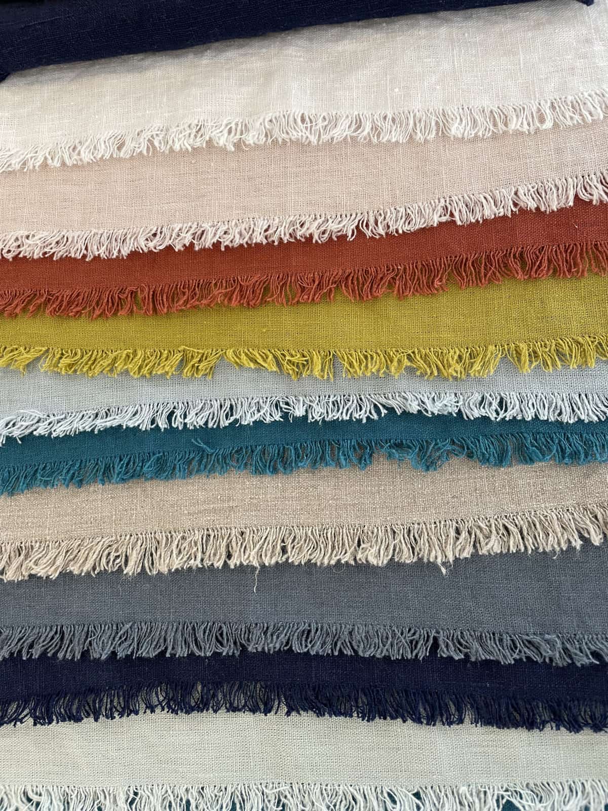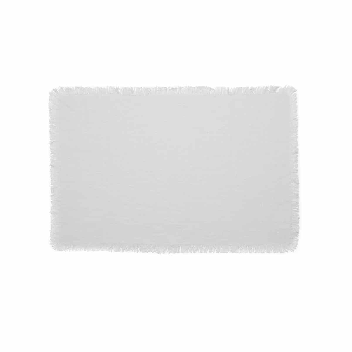 Un set de table 100% lin, avec des franges entièrement tirées à la main. Une couleur Neige, blanc immaculé, d’une grand élégance.