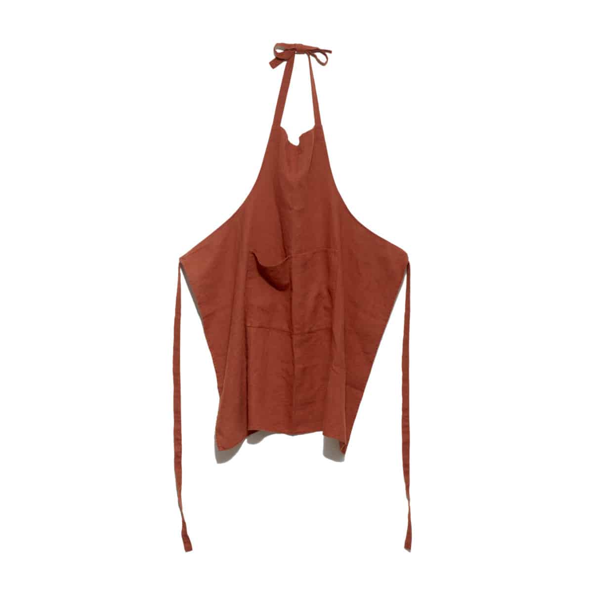 Un tablier, 100% lin, cousu à la main, robuste, chic et naturel. De larges poches à l’avant pour ranger facilement ce dont vous avez besoin. Un lien large et solide pour ajuster la taille. Une couleur Ocre, brique, chaude et lumineuse.
