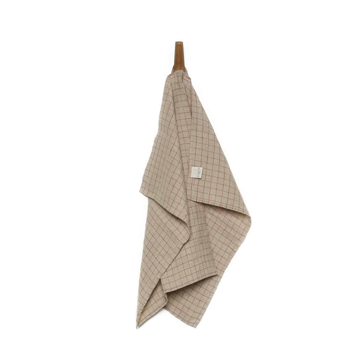Un torchon 100% lin, cousu main, solide et doux, avec son accroche au centre.