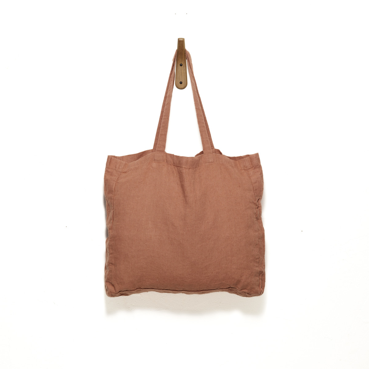 Tote bag XL Mocha, 100% lin, cousu à la main, robuste, chic et naturel. Une couleur Mocha, brun authentique et lumineux.
